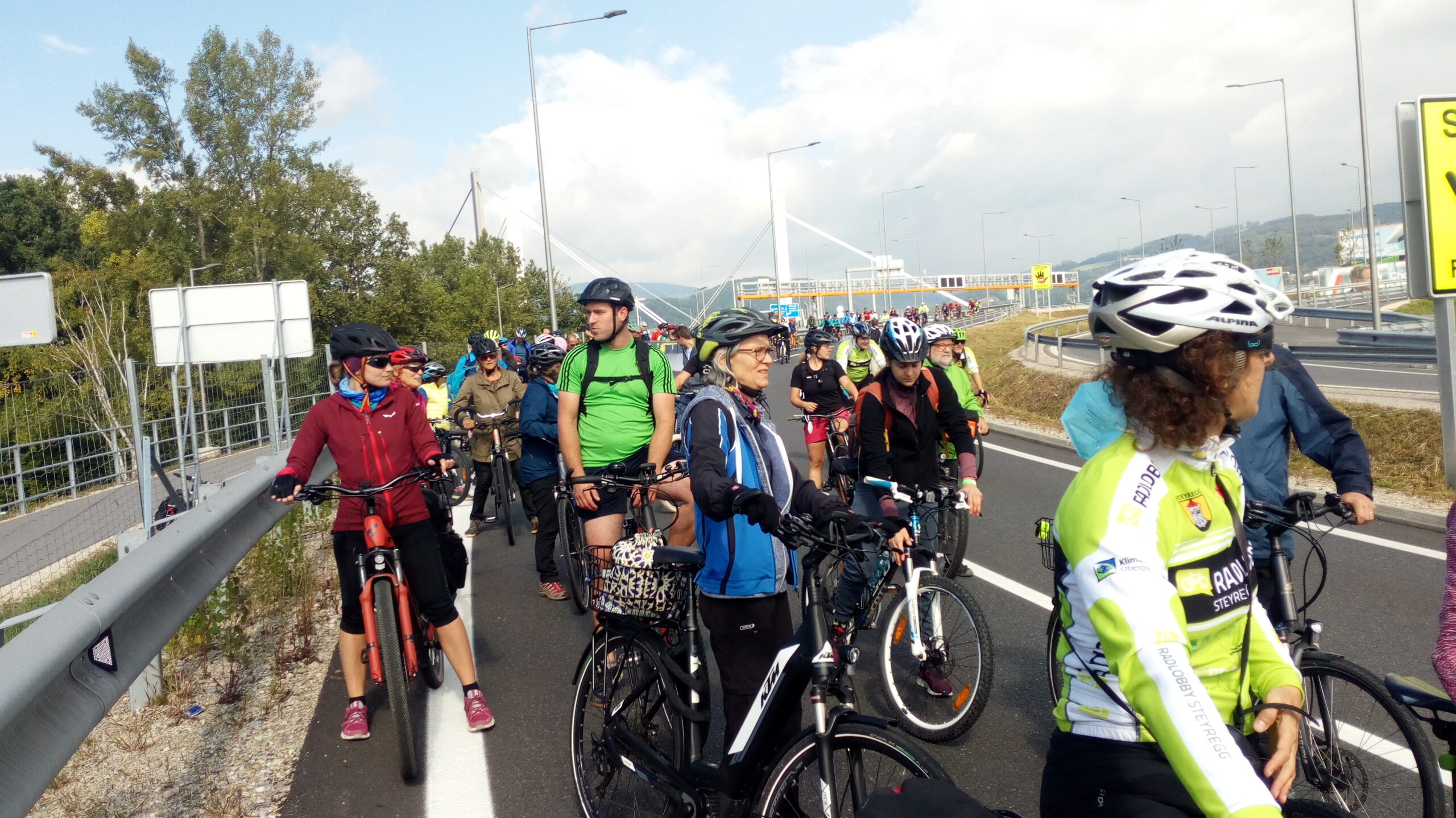 Mit dem Motto „Radpedal statt Gaspedal“ organisierte die Radlobby Oberösterreich letzten Samstag, den 18. September, das schone achte SternRADln nach Linz zum Mobilitätsfest und zur Linzer Radparade. Startpunkte in der Region Sterngartl Gusental waren Gallneukirchen und Oberneukirchen um 9:30 Uhr, bzw. 8:45 Uhr, letzterer hatten Zustiegspunkte in Zwettl und der Glasau. Die Konvois wurden durch Polizeifahrzeuge abgesichert und verliefen über die Hauptstraßen hinein zum Linzer Hauptplatz. Trotz der nicht ganz so geeigneten Wetterlage, fand sich eine beachtliche Menge an Radfahrern am Hauptplatz ein. Um 11:00 Uhr startete die einstündige Linzer Radparade durchs Stadtgebiet, welche mitunter über die Nibelungenbrücke, die neue Eisenbahnbrücke sowie eine der Bypassbrücken der A7 und somit zum ersten Mal über alle drei Donaubrücken führte. Zum Abschluss ging es noch durch den Römerbergtunnel, bevor der Konvoi wieder zum Hauptplatz gelangte.